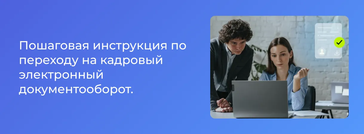 Чтобы успешно запустить проект по переходу на кадровый электронный документооборот, назначьте ответственных. Эти сотрудники будут внедрять КЭДО от начала и до конца.