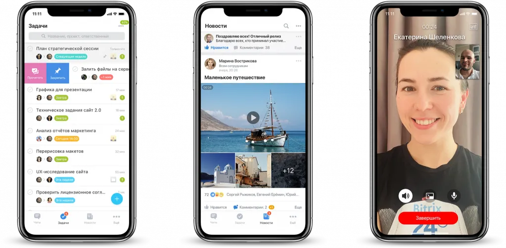 Видеоконференции в «Битрикс24» включают до 12 участников, не ограничены по времени и доступны даже на бесплатном тарифе. Внешние участники смогут подключаться к конференции по ссылке.