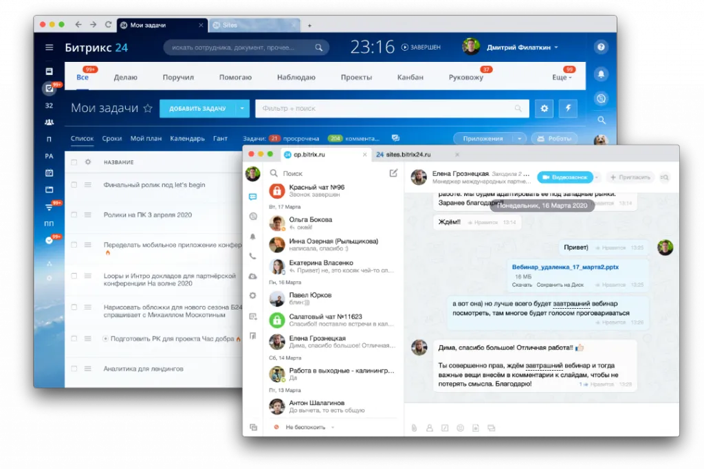 Весь Битрикс24 — в одном приложении: установите его на компьютер и работайте, даже если браузер закрыт. Ничто не отвлекает от работы, нет лишних вкладок, не нужно помнить пароли.