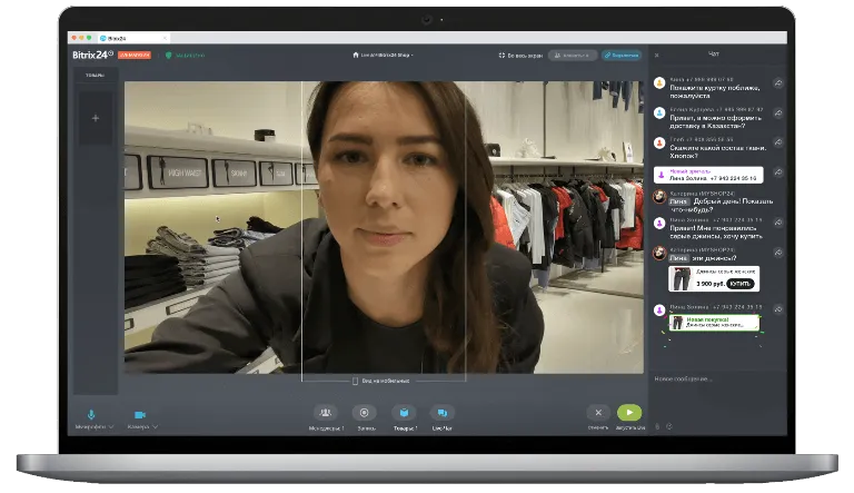 Live и stream стали уже привычными в соцсетях. Людям нравится выбирать товары в live и им важно посмотреть видео перед покупкой. В Битрикс24 теперь вы легко запустите live-трансляцию из своего магазина, поможете клиенту сделать выбор в видеозвонке. Вся информация о клиенте и сделка сразу попадает в CRM.