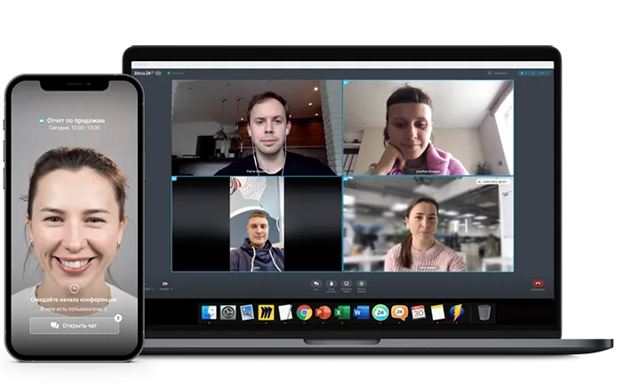 Звонить из Битрикс24 можно не только внутри своей компании, а любым внешним участникам. Им не нужно будет регистрироваться – достаточно перейти по ссылке. В видеоконференциях доступны все возможности видеозвонков и нет ограничений по времени.