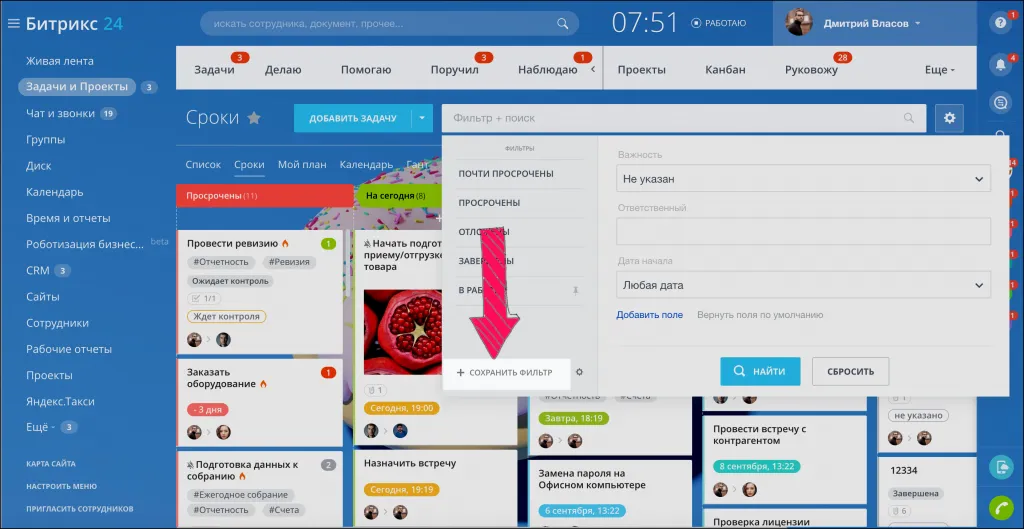 С помощью фильтра вы можете быстро найти нужные задачи или настроить собственный фильтр для работы.