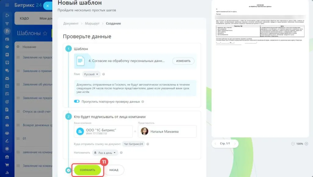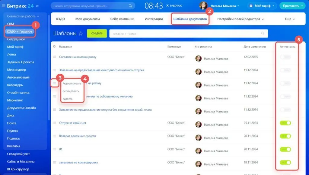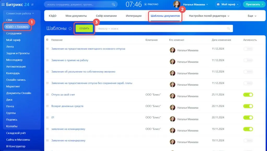 Как создать шаблон документа в Битрикс24 КЭДО
