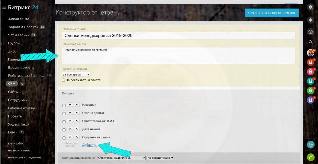 Конструктор отчётов в CRM