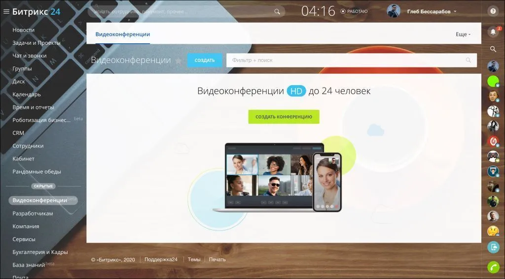 В Битрикс24 появились видеоконференции. Общайтесь, обсуждайте проекты, заказы и проводите переговоры с вашими клиентами. Создавайте конференцию и отправляйте ссылку тем, с кем планируете пообщаться.