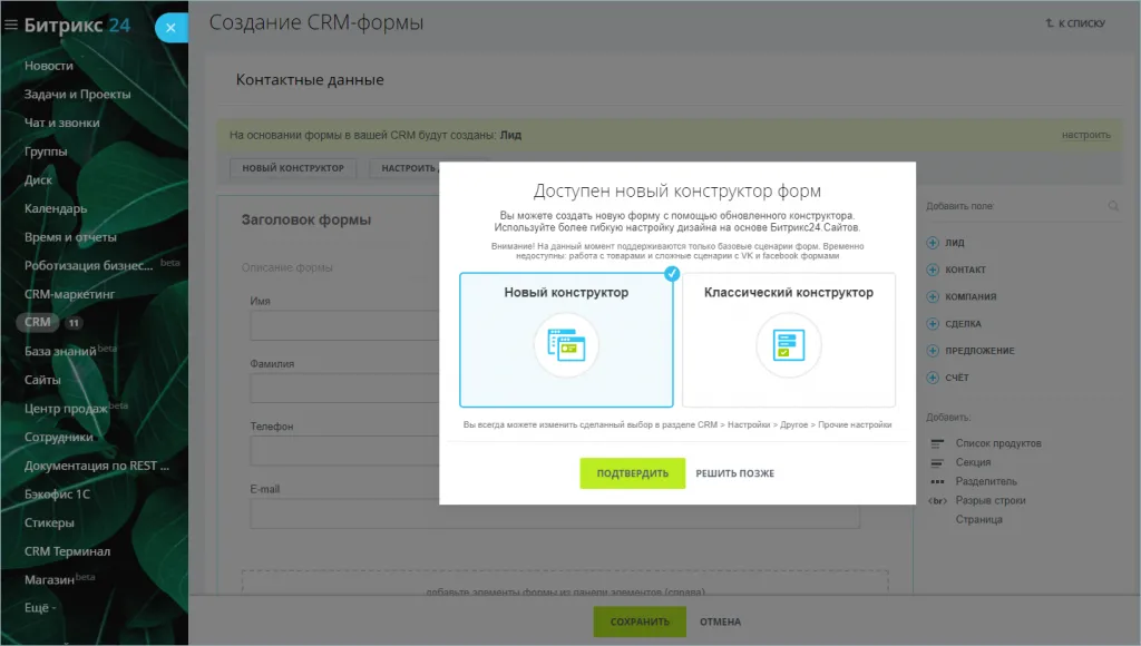 Что изменилось в новом конструкторе CRM-форм?