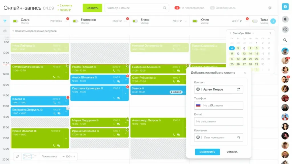 - Мультизапись: поддержка работы нескольких менеджеров, даже если они работают в разных филиалах.