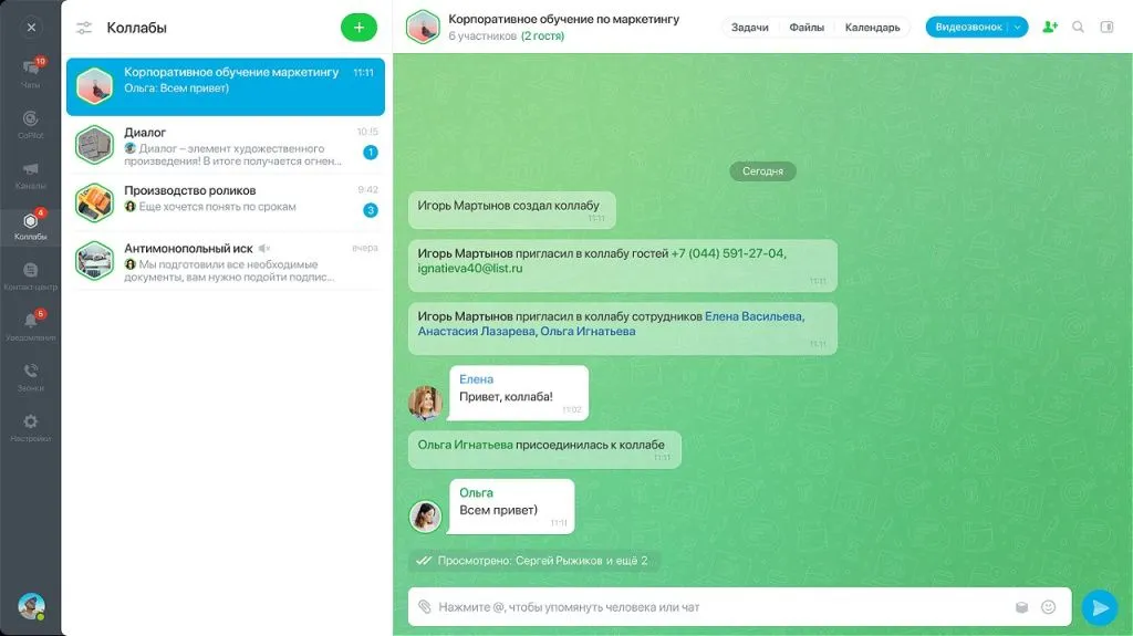 Битрикс24 Мессенджер — рабочее пространство с чатами, каналами, видеозвонками, открытыми линиями, AI-ассистентом и Коллабами. Вы сможете настроить бесперебойную работу, даже если в вашей компании тысячи сотрудников.