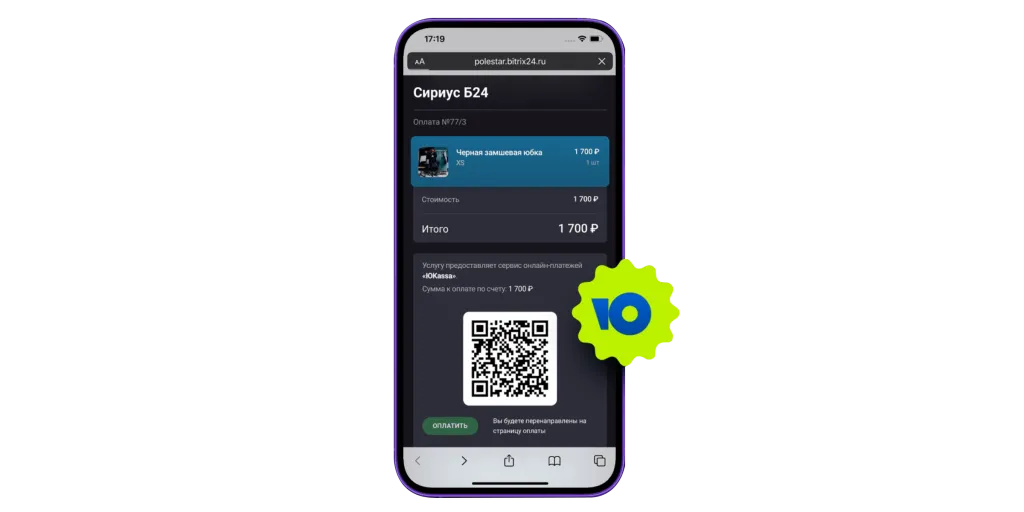 Поставьте всем сотрудникам мобильное приложение Битрикс24 и принимайте безналичную оплату со смартфонов. Это бесплатно и быстро.