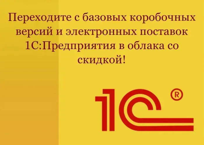 Переходите с базовых коробочных версий и электронных поставок 1С:Предприятия в облака со скидкой.