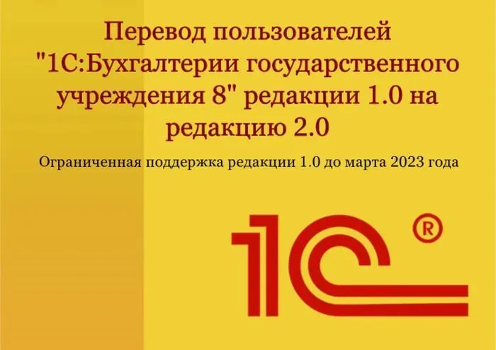 Перевод пользователей "1С:Бухгалтерии государственного учреждения 8" редакции 1.0 на облачную или "коробочную" версию редакции 2.0. Ограниченная поддержка редакции 1.0 до марта 2023 года