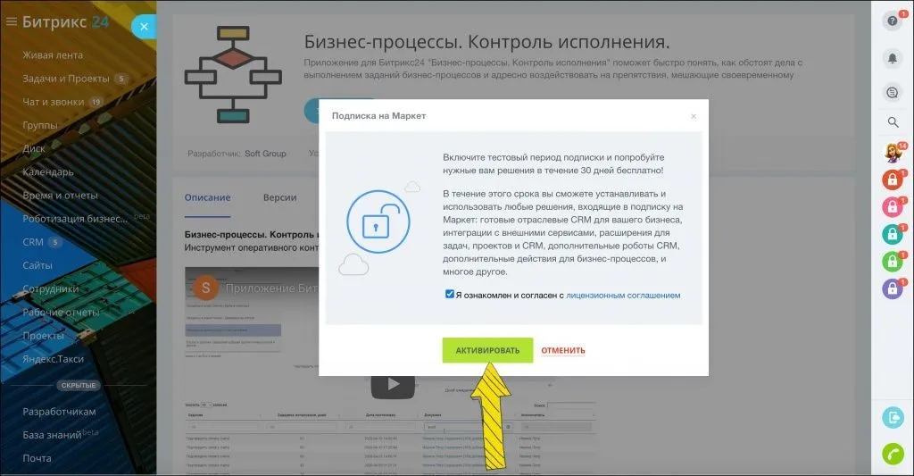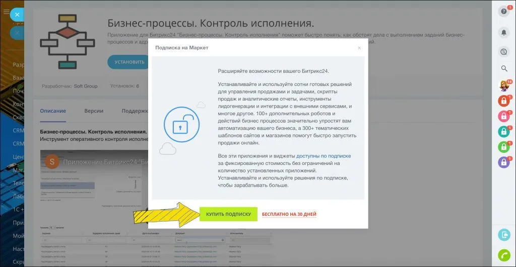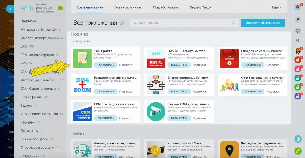 Для подключения подписки откройте раздел Приложения в вашем Битрикс24.