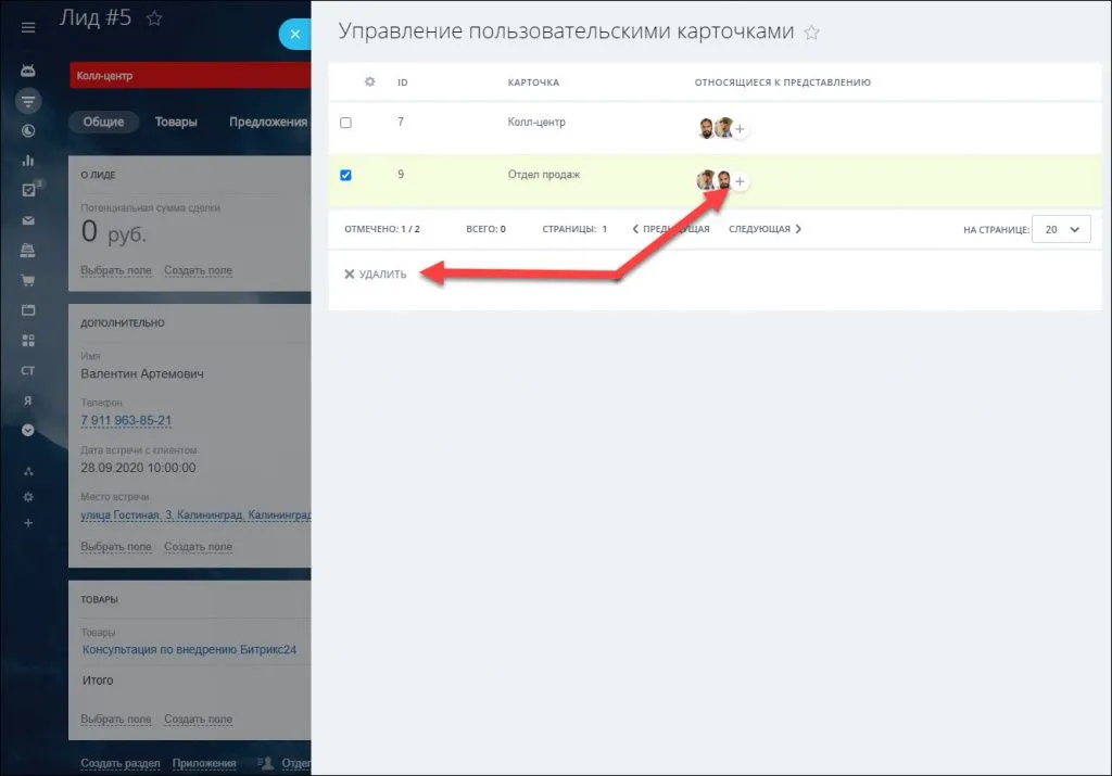 Представления CRM - это инструмент, с помощью которого вы сможете настроить поля в карточке CRM для конкретных сотрудников.