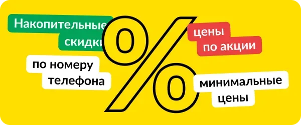 - Накопительные и персональные скидки.