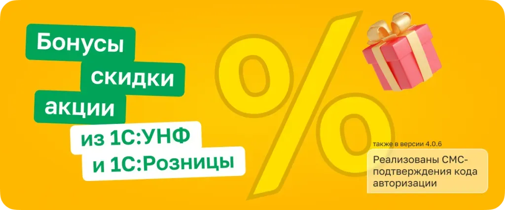 Бонусы, скидки и акции из 1С:УНФ и 1С:Розница
