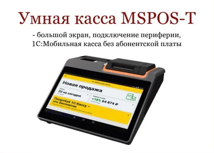 Умная касса MSPOS-Т за 25 900 рублей – большой экран, подключение периферии, 1C:Мобильная касса без абонентской платы
